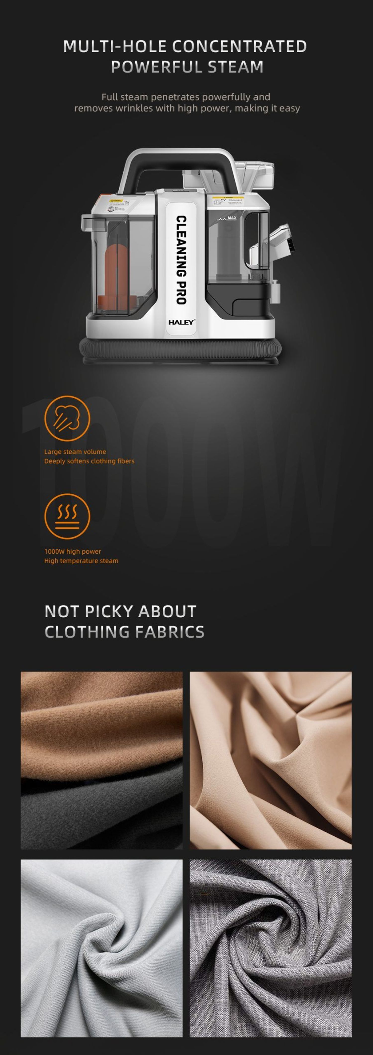HALEY 1000W хивс буйдан,даавуун гадаргуу цэвэрлэх машин нь тусдаа цэвэр болон бохир усны сав, урт хоолой болон цахилгааны залгууртай бөгөөд буйдан, хивс, бүрээсийг гүн цэвэрлэх зориулалттай.